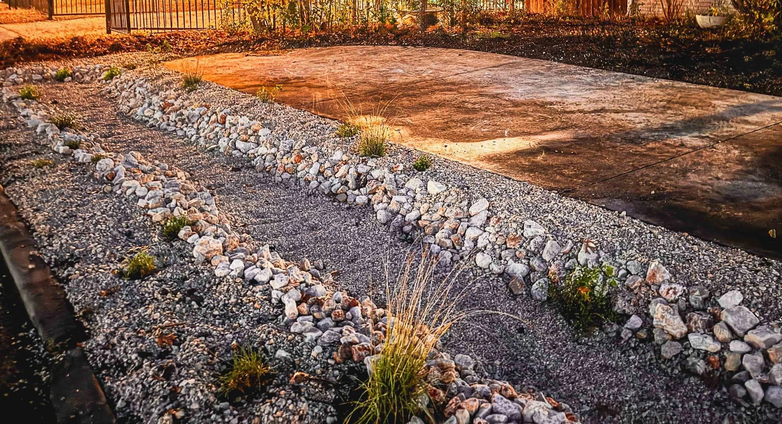 bioswales, catchment basins, infiltration zones, fountain and pavilion construction logic moves water with purpose across your landscape, optimizing absorption, and making every drop count.